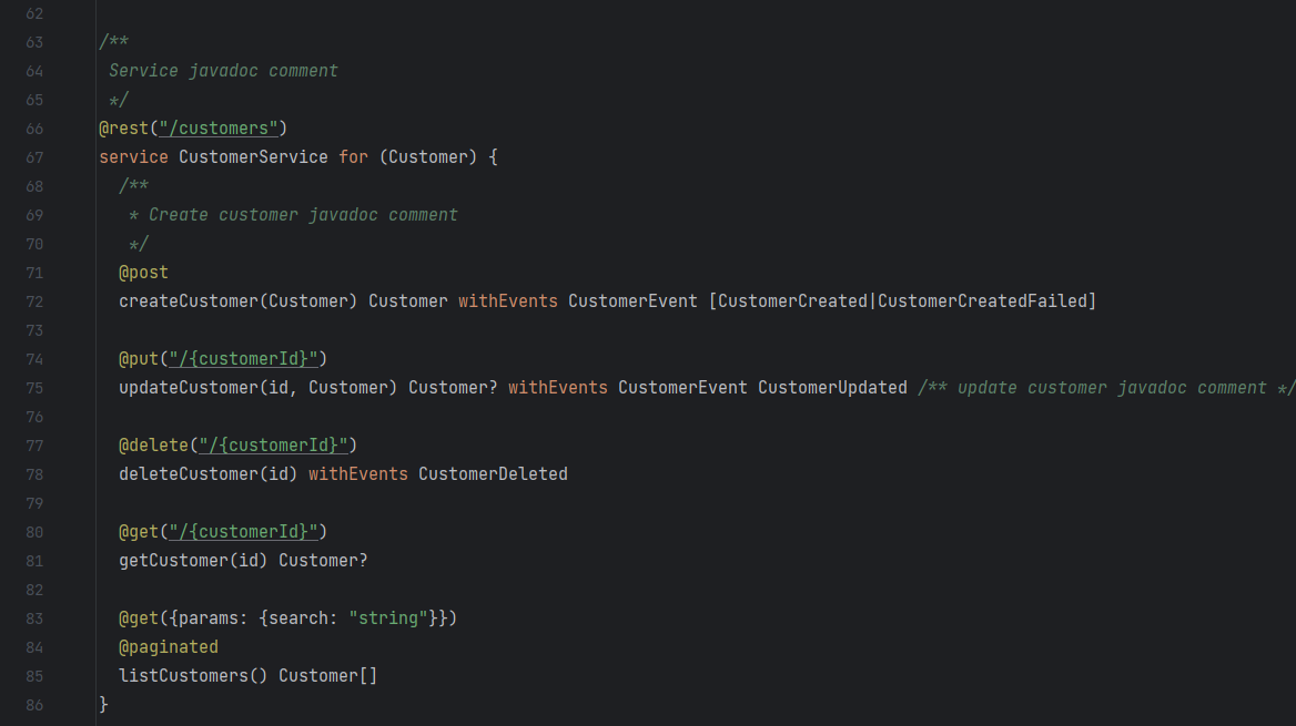 - Customize generated code implementing non-CRUD service commands and customize generated tests.